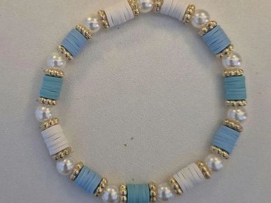 This cute bracelet features vibrant blue and white beads with pearls at the center, adding a touch of pop to any outfit. Perfect for Easter or as a fun, everyday accessory to spread some positive vibes!