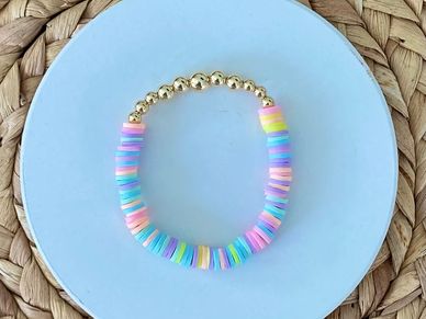 This charming bracelet combines many beautiful colors with golden accents . A sweet and simple piece to add a touch of style to your everyday look!